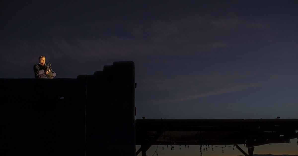 Not here, anyway, thanks to Wild Up, which is wildly up to its usual reinvention — innovation being too tame a word for this extraordinary collective — with a "darkness sounding" series. Wild Up's message is that the shortening of days calls for special fanfares, and on Thursday night the group began by stunningly drumming down the sun and strategically bagpiping up the full moon in the Joshua Tree desert. This was the first of 11 concerts through Jan.