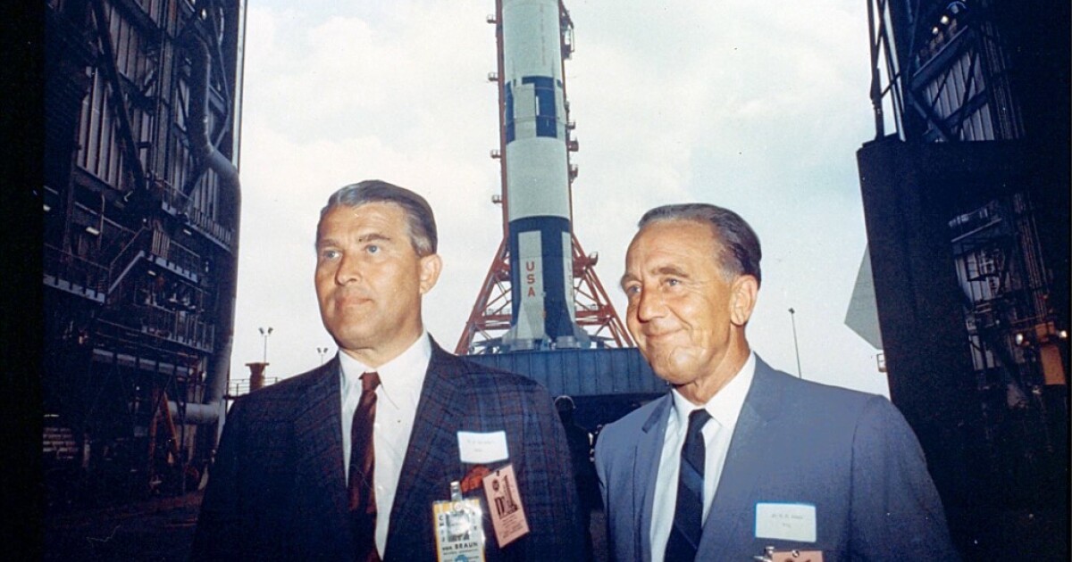 On one side of the bottle was Wernher von Braun, the engineering genius who had developed the world's first ballistic missile for Adolf Hitler during World War II. He had once been a member of Hitler's Schutzstaffel, or SS, but now ran NASA's Marshall Space Flight Center in Huntsville, Ala.