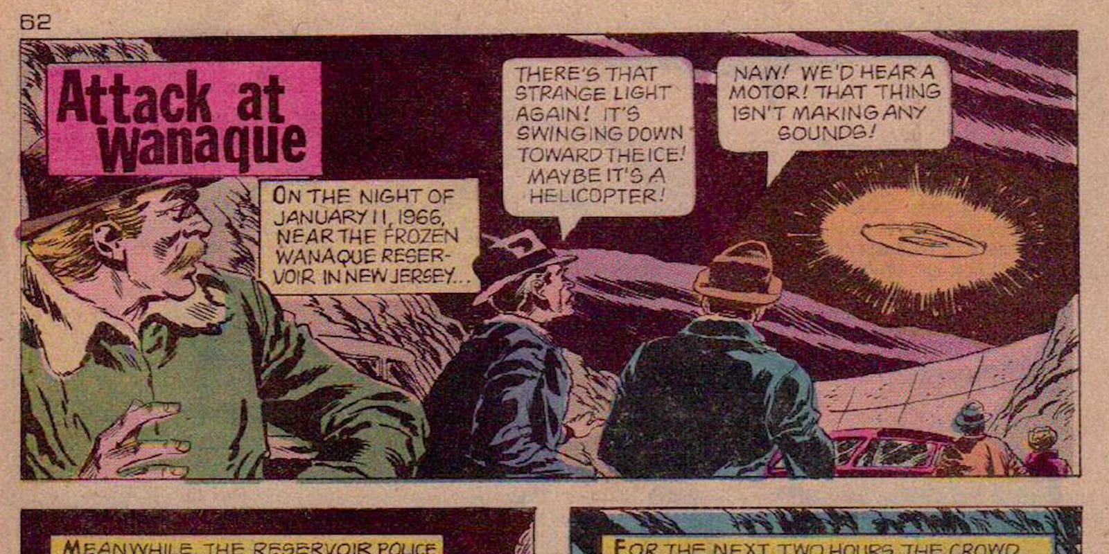 The crash was reported by a third witness who was able to have a close look at the craft which resembled an "eight metre long yellow speed boat from it's under side".