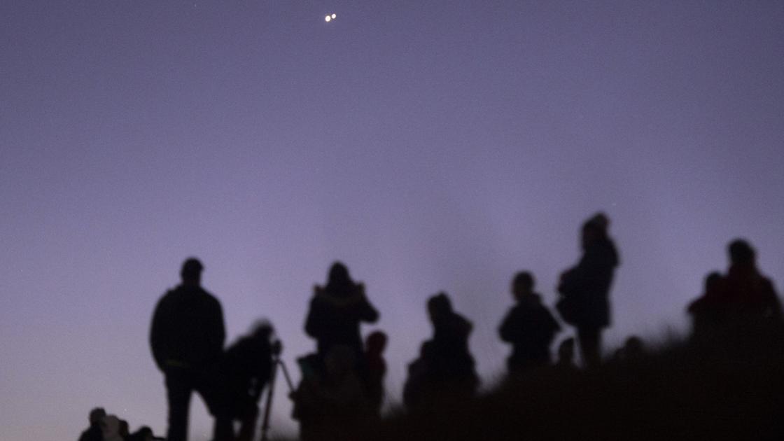 Observers at Holmes Lake watch as Jupiter and Saturn come together to decorate the night sky Monday.