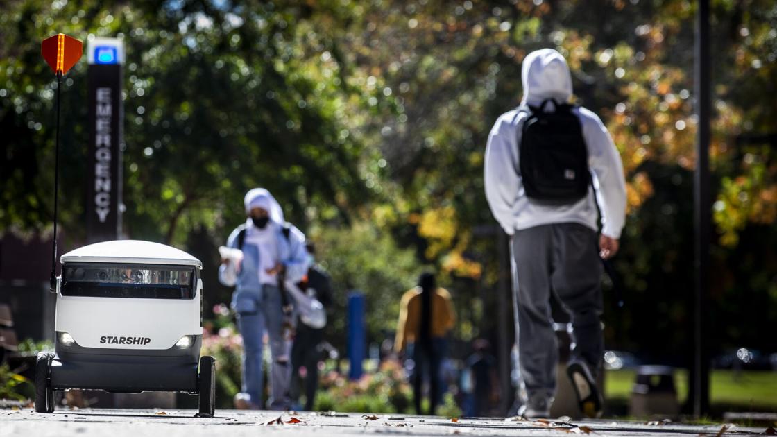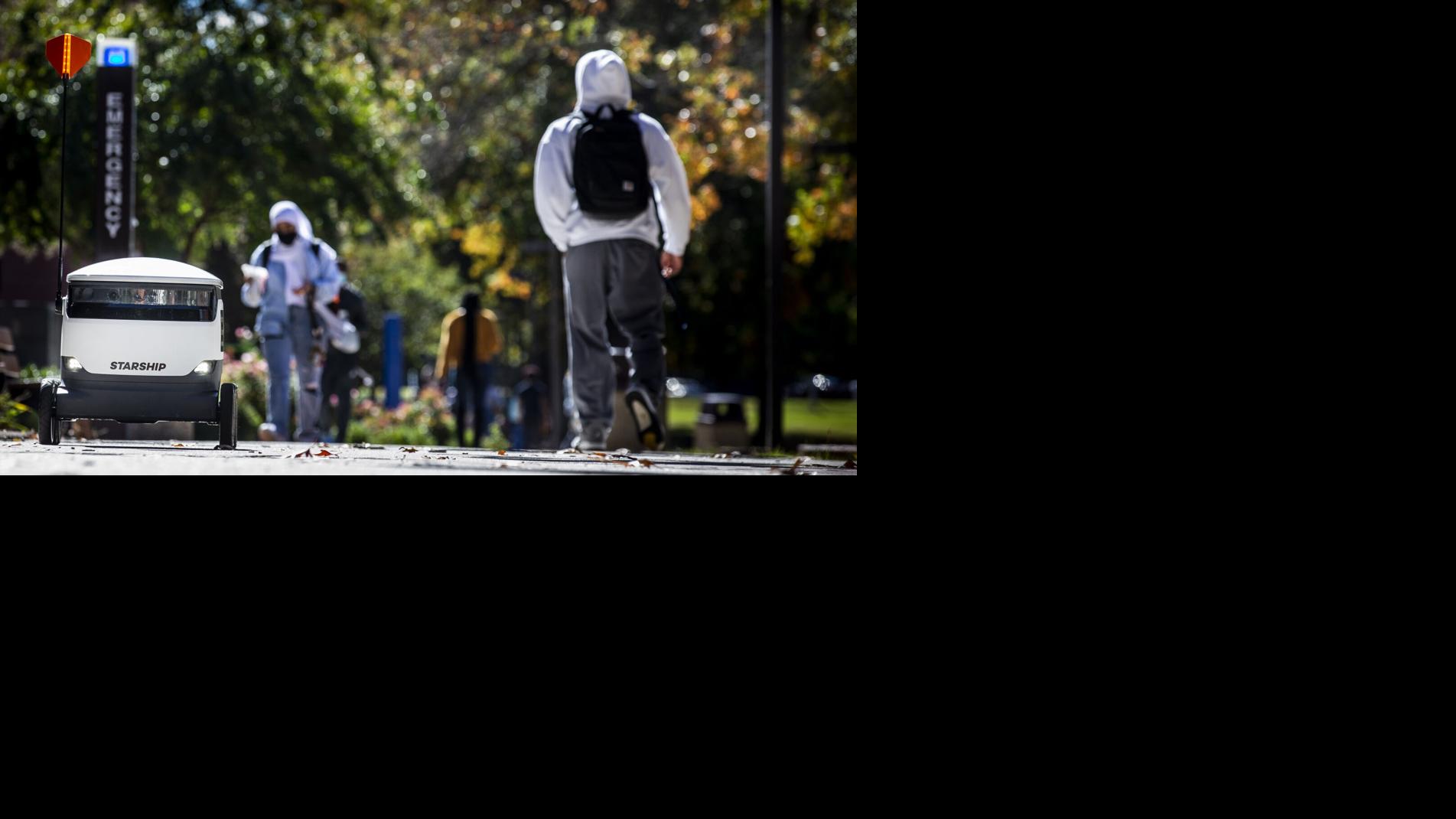 A Starship Technologies robot makes a delivery Tuesday on N.C. A&T's campus. There are 20 of these self-guided robots delivering food on campus. "I like it, it's cool," said one student using the service.