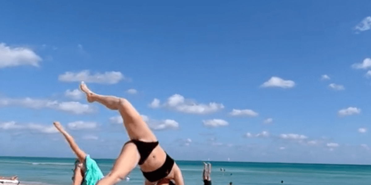 A fitness influencer's TikTok is going viral after she posted a video of herself doing yoga on the beach when an unexpected guest interrupted her - a four-year-old girl.