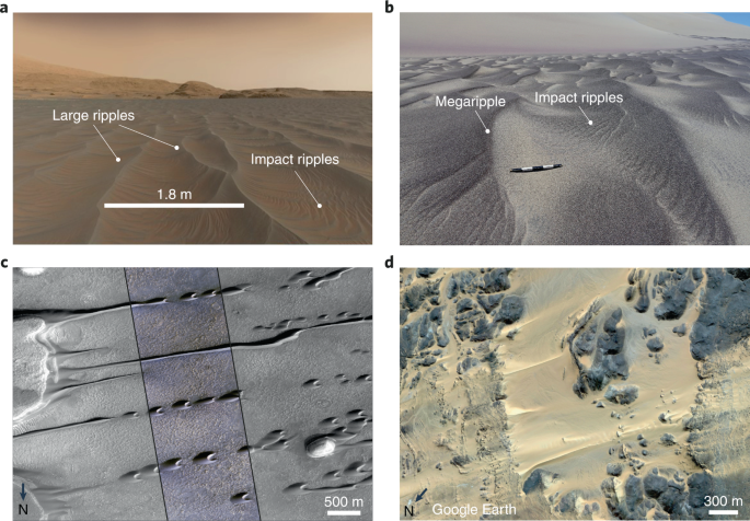 A unified theory of particle transport by wind can explain the observations of aeolian features, like dunes, across the Solar System rocky bodies with atmospheres.