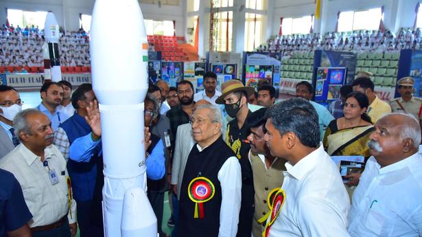 Andhra Pradesh Governor Biswabhushan Harichandan at the inaugural of World Space Week 2022 at Puttaparthi on Wednesday. | Photo Credit: Special Arrangement