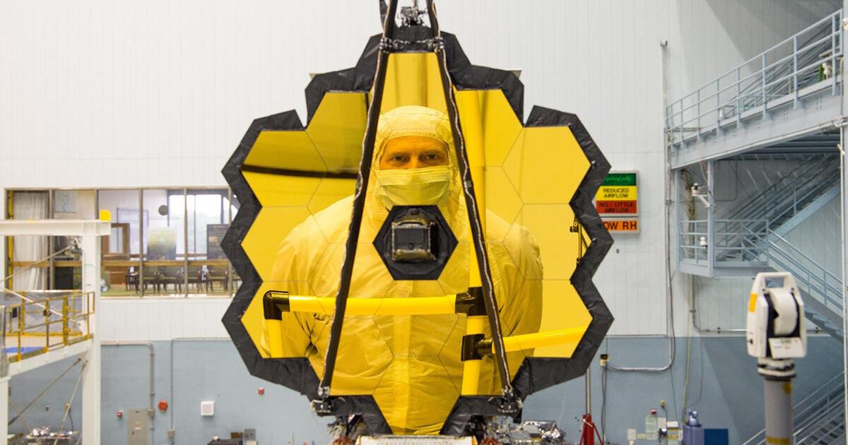Dr. Scott Acton is reflected in the James Webb Space Telescope. "Several years ago, I climbed up a tower that was positioned very near the center of curvature of the primary mirror of Webb. A NASA photographer took this shot and gave it to me," he said.