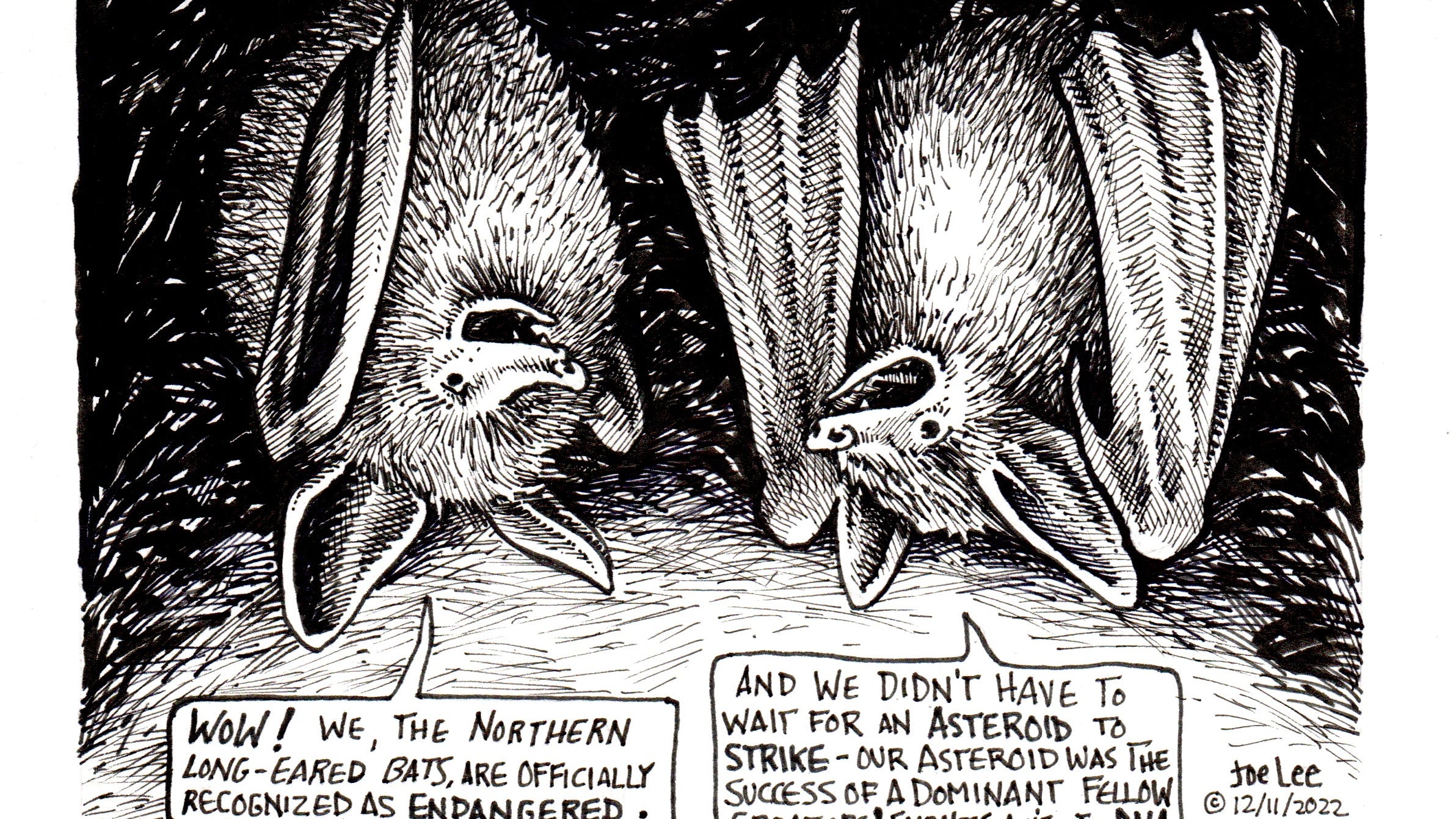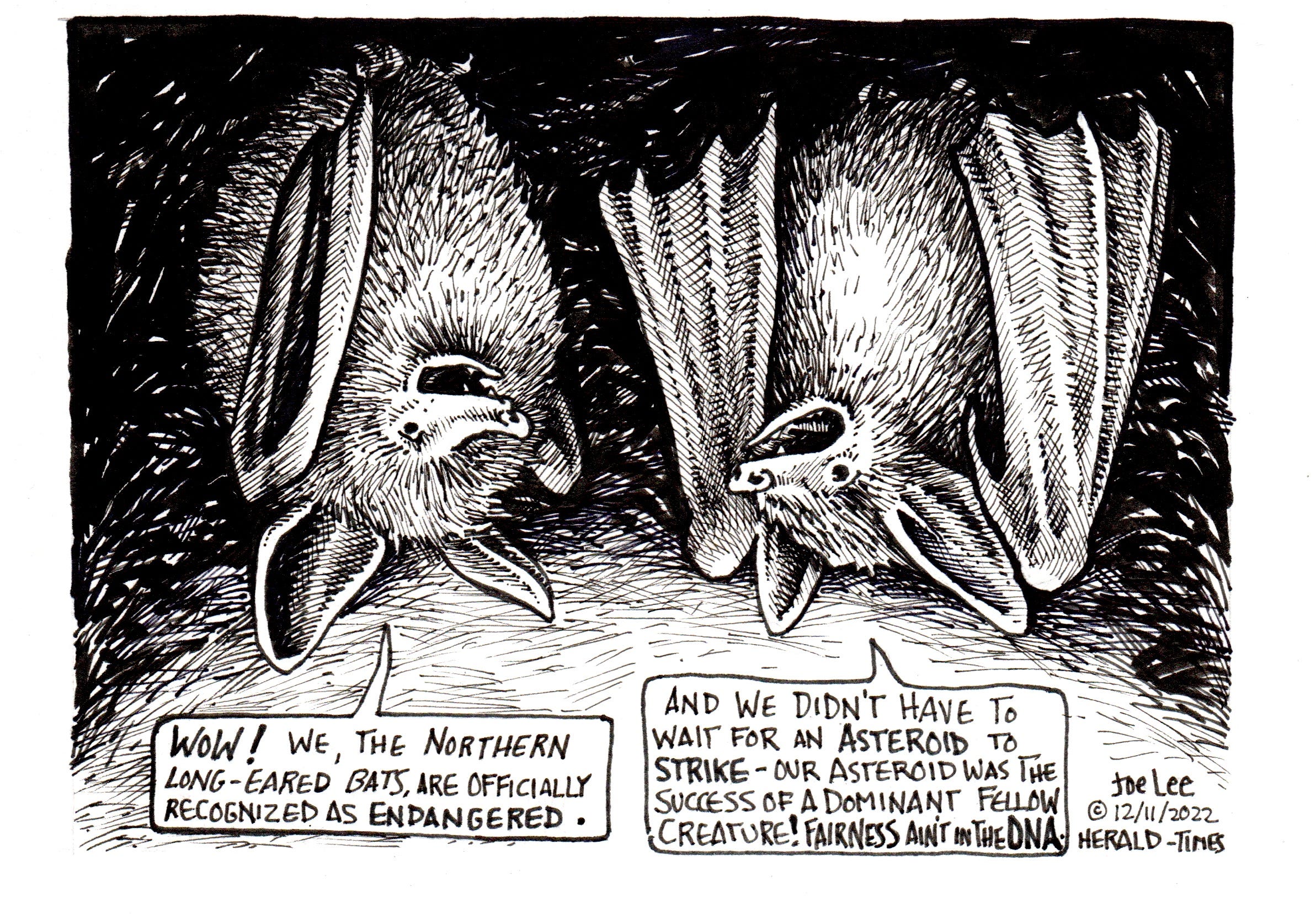 Joe Lee editorial cartoon on long-eared bat listed as endangered