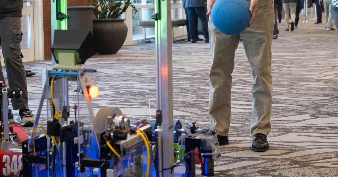 Students from across the state display robots built for competition at an event organized by the Naval Information Warfare Center Atlantic at the Charleston Area Convention Center.