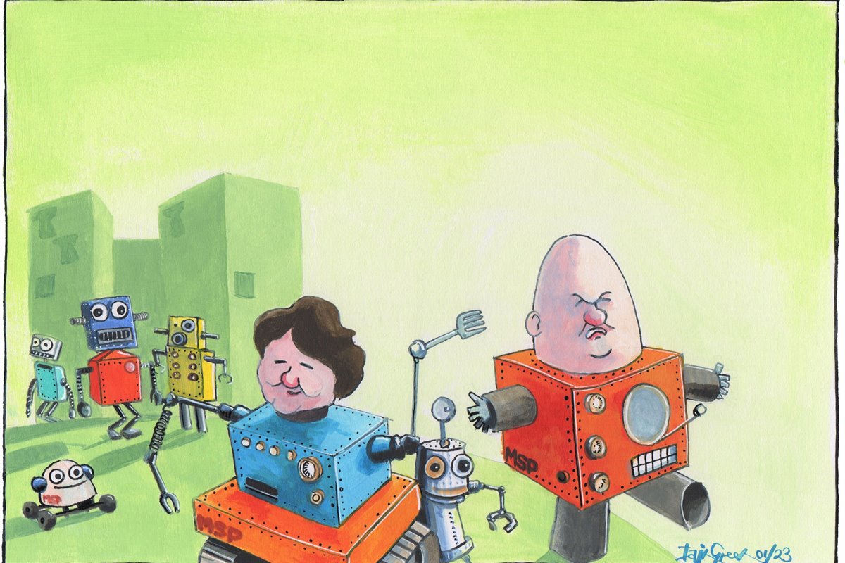 The SNP’s Gordon Macdonald is concerned about robot density in the UK. Specifically, his complaint is there are too few robots on these shores. Some might suggest that he takes a look at the benches around him.