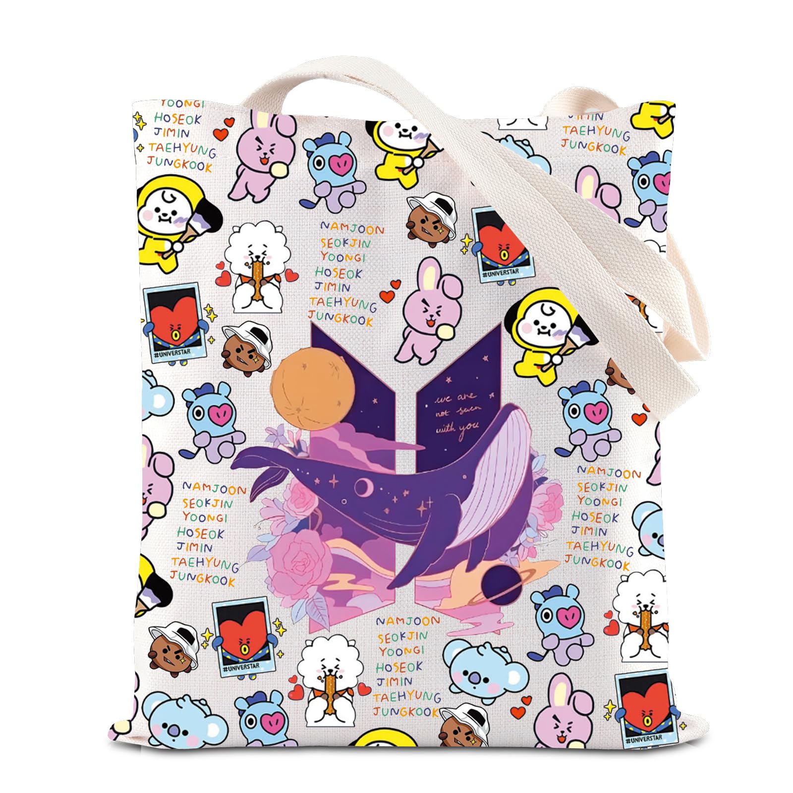 FOTAP Purple Whale Tote K-pop Tote Bag Bangtan Boys Gift K-pop Band Inspired Shoulder Bag Army Members Fans Merch 3.9 3.9 out of 5 stars (3) $14.89 $ 14 . 89 List: $15.89 $15.89 5% off coupon applied Save 5% with coupon (some sizes/colors) FREE delivery Wed, Mar 26 on $35 of items shipped by Amazon Add to cart