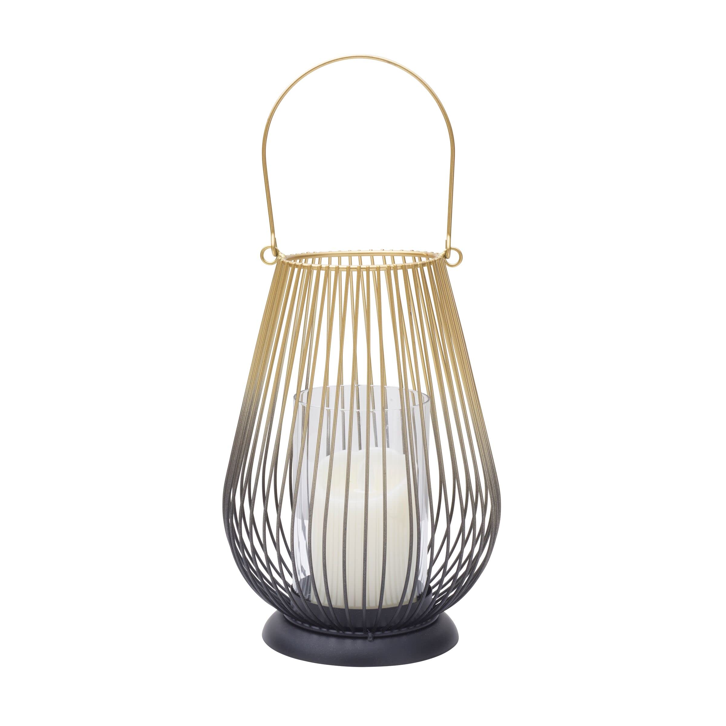Elements 7.48x7.48x10.43 Inch Gold and Black Wire with Clear Glass Candleholder, for Use with Wax or Flameless Candle.