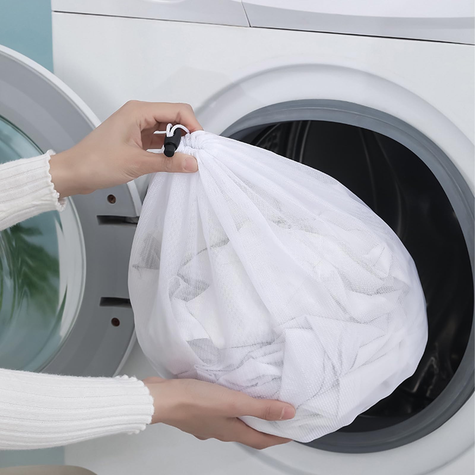 • Features a drawstring design for easy closure and secure contents during washing.